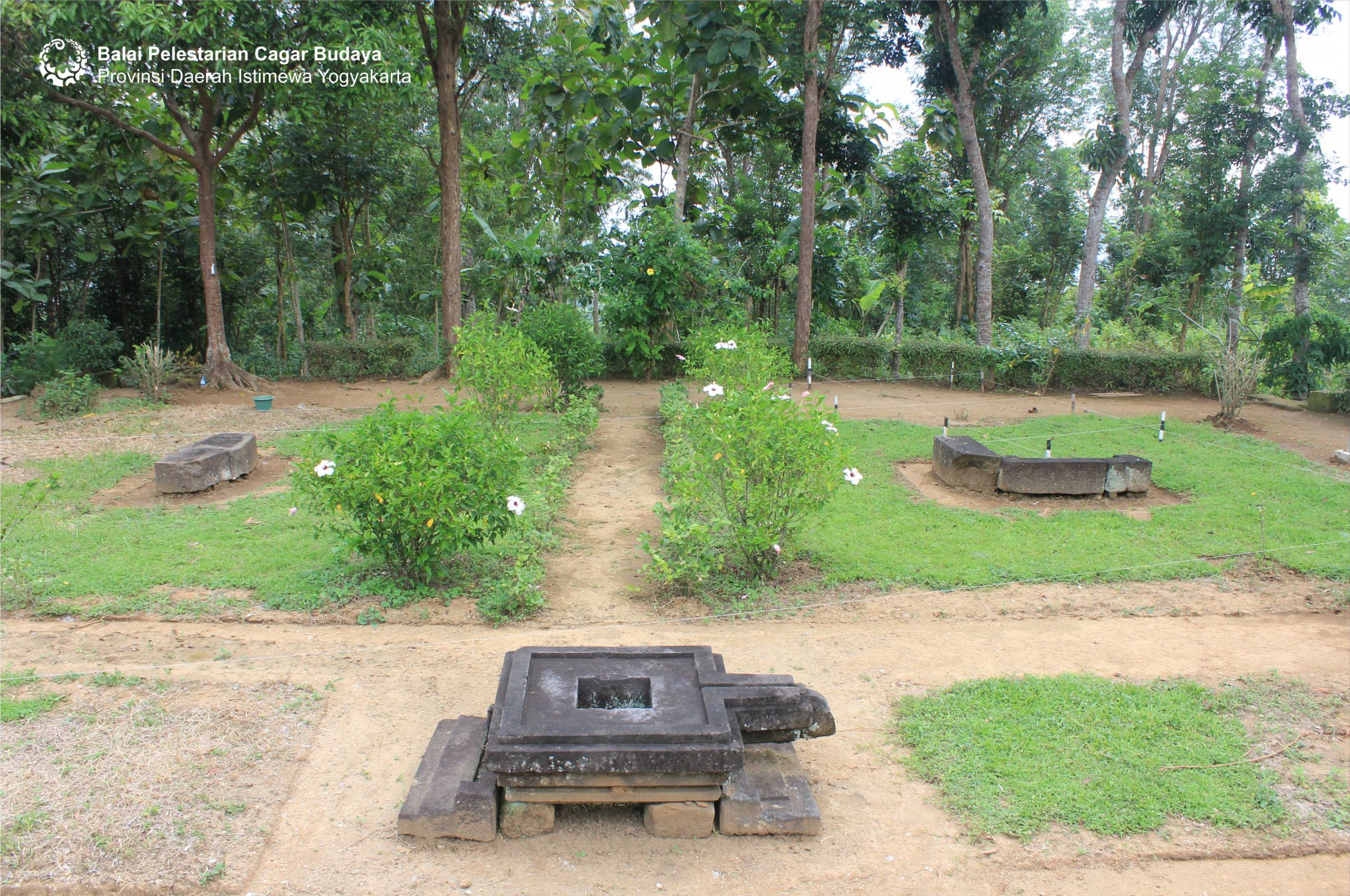 Dalam reruntuhan candi yang belum sepenuhnya direnovasi ini, banyak terdapat tumpukan batu candi dan di antaranya dahulu ditemukan arca lembu Nandi, kendaraan dewa Siwa, berukuran 120 X 60 sentimeter dengan tinggi 60 sentimeter. Menurut informasi dari kantor SPSP (Suaka Peninggalan Sejarah Purbakala), DIY, arca ini pernah diambil bagian kepalanya oleh orang tidak bertanggung jawab sebagai pengoleksi barang peninggalan purbakala.